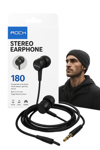 هندزفری سیمی ROCK مدل 180 با میکروفون و کلید کنترل صدا۱۱۰٬۰۰۰ 40%